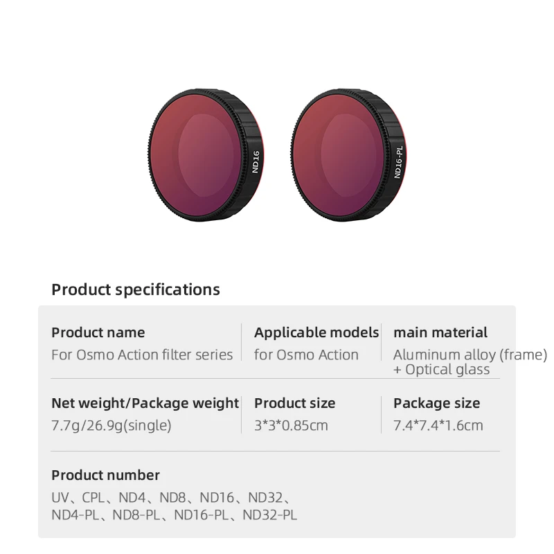 Model Number: for DJI OSMO Action Lens Filter